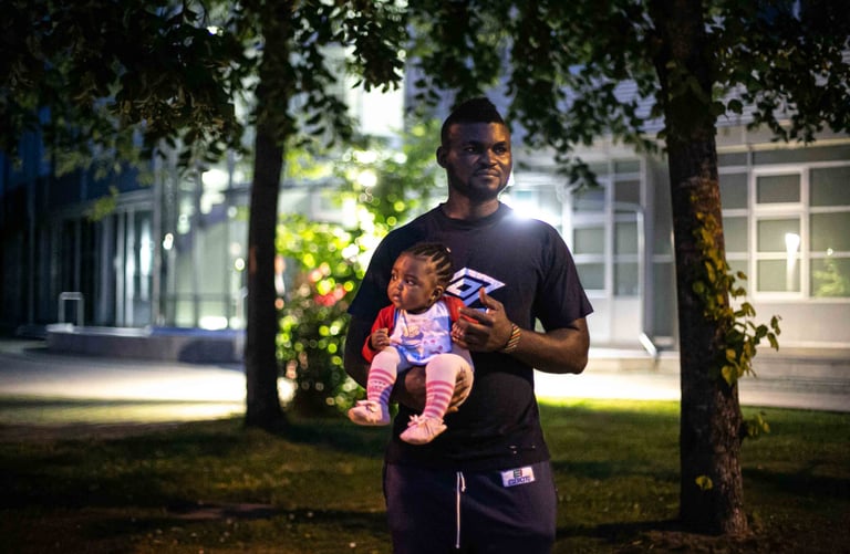 Emmanuel sits quietly in the corner of a very small refugee housing facility in Bavaria, watching his 5 month-old daughter Mary crawling near the window. Once a student in his home country, he now lives in Germany with his wife and child, struggling to navigate a new society that often feels overwhelming—and, at times, indifferent. Since arriving two years ago, Emmanuel has been unable to find steady work, leaving him dependent on sporadic day labor and government assistance.